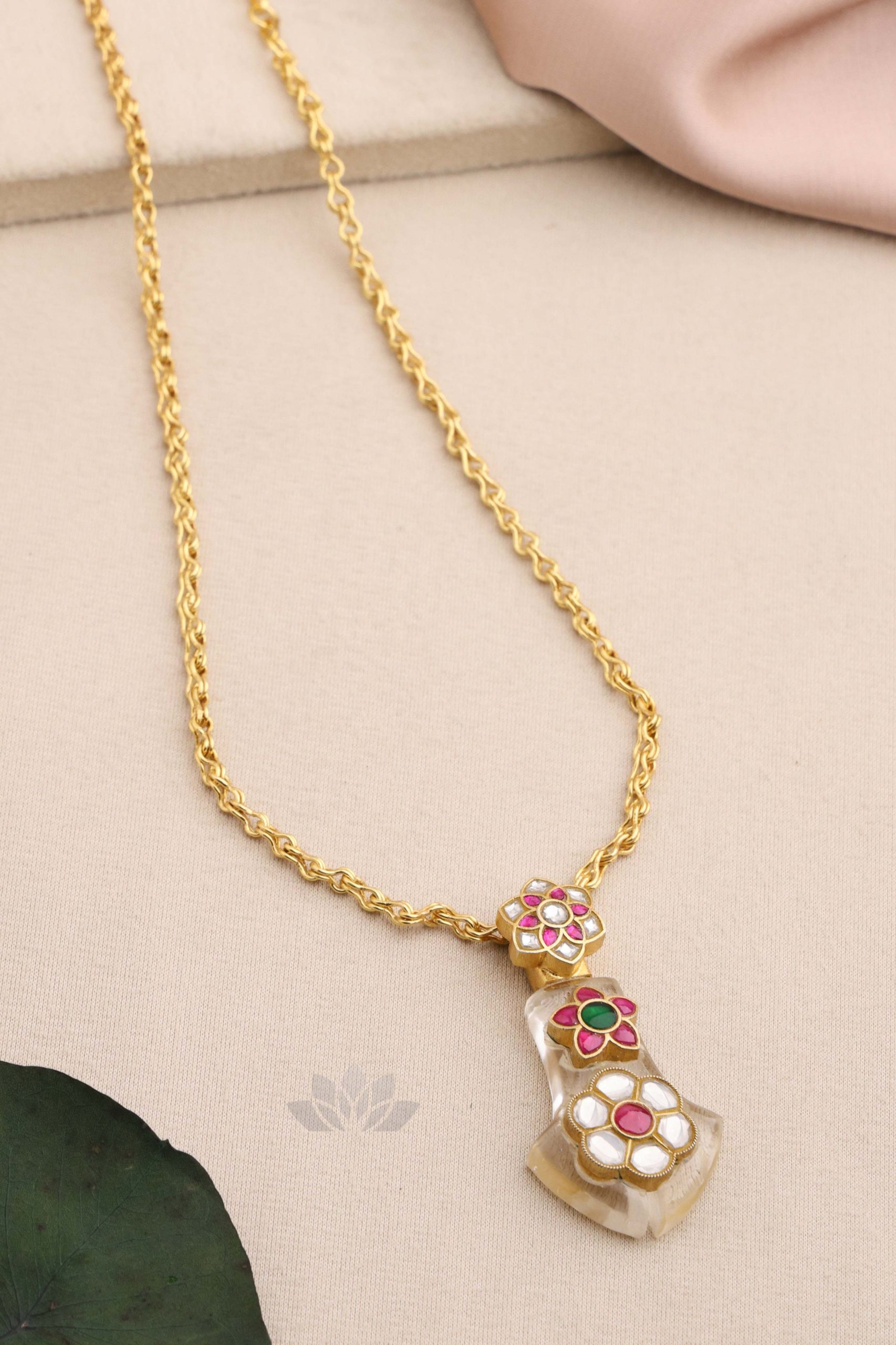 Gold plated 925 Silver – Long Silver link chain with stone pendant with kundan works on it