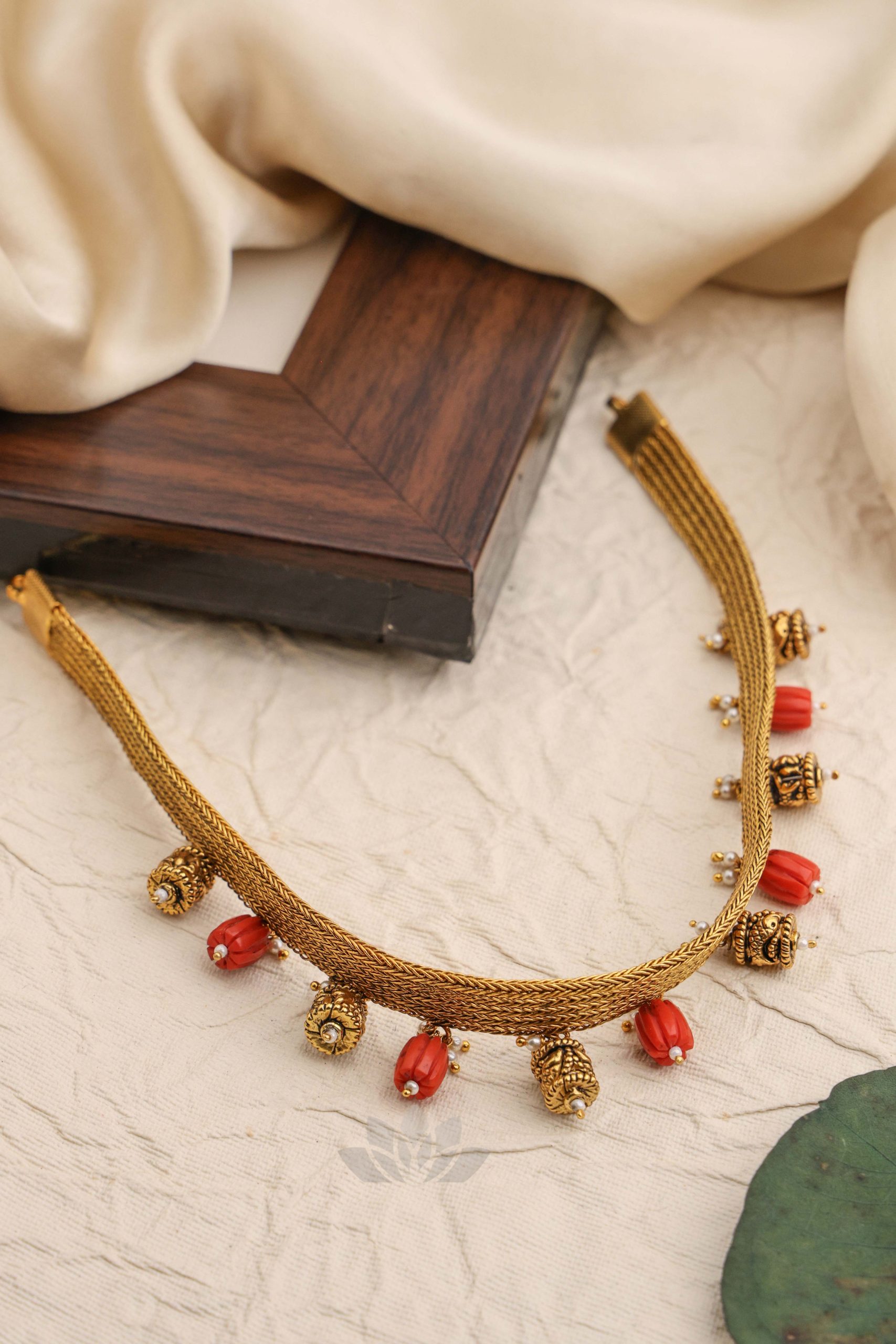 Gold plated 925 Silver choker with nakshi and coral beads