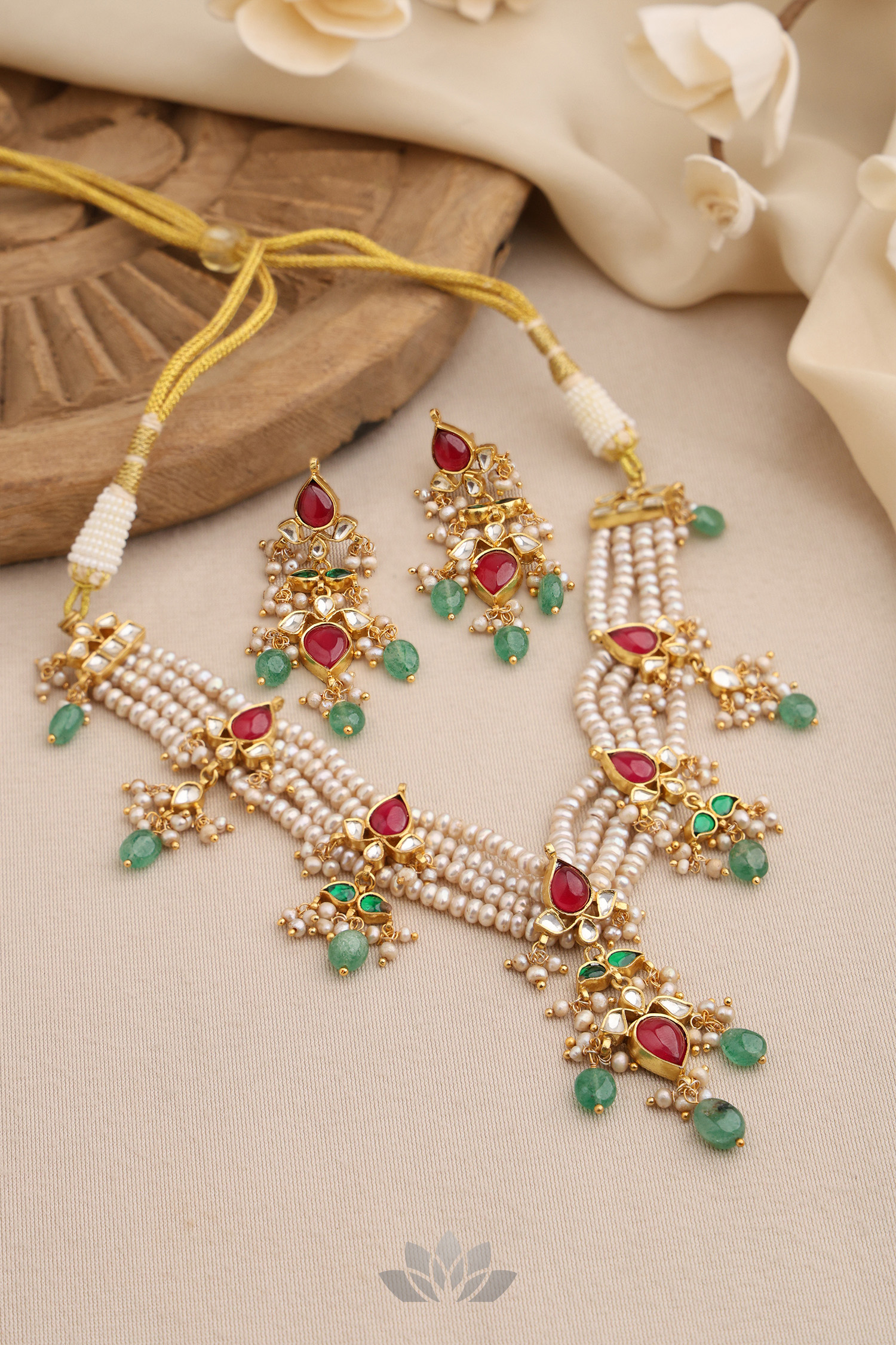Gold plated 925 Silver – Pearl Kundan Choker set