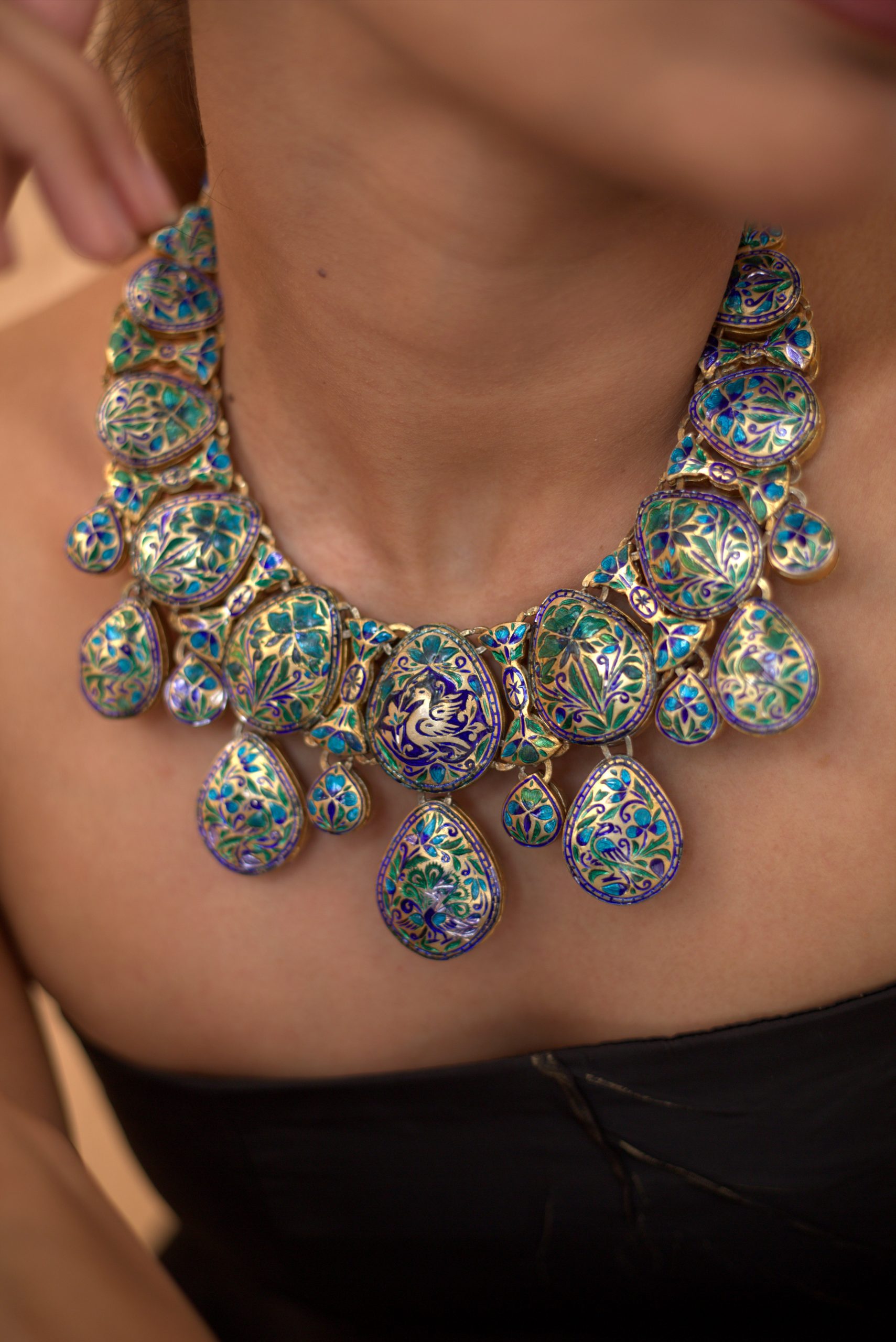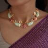 Gold plated 925 Silver – Statement reversible necklace with moissanite stones on one side and meenakari works on the other side