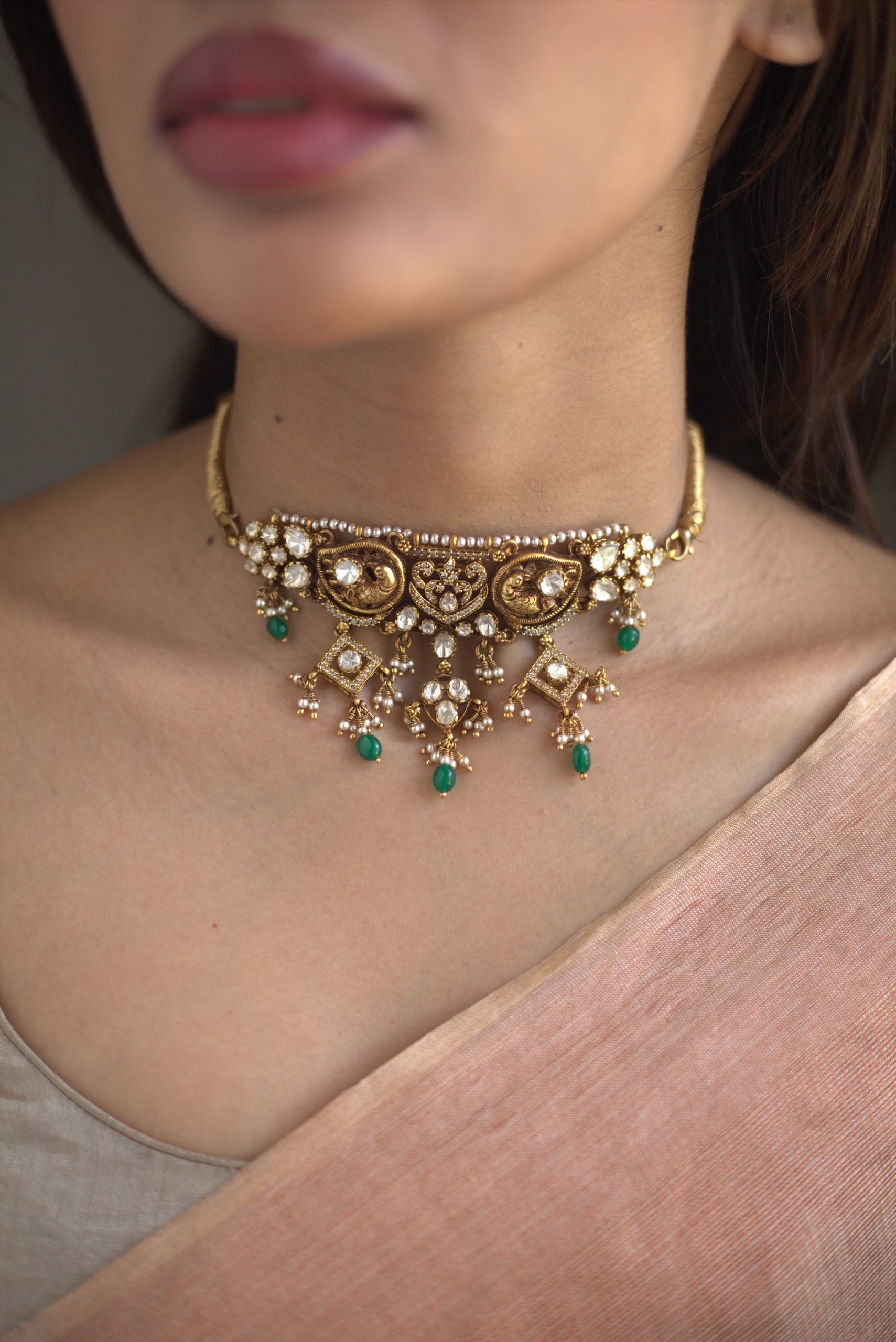 Gold plated 925 Silver – Moissanite Stone Nakshi Choker