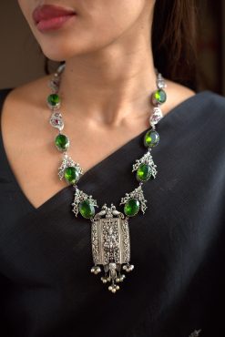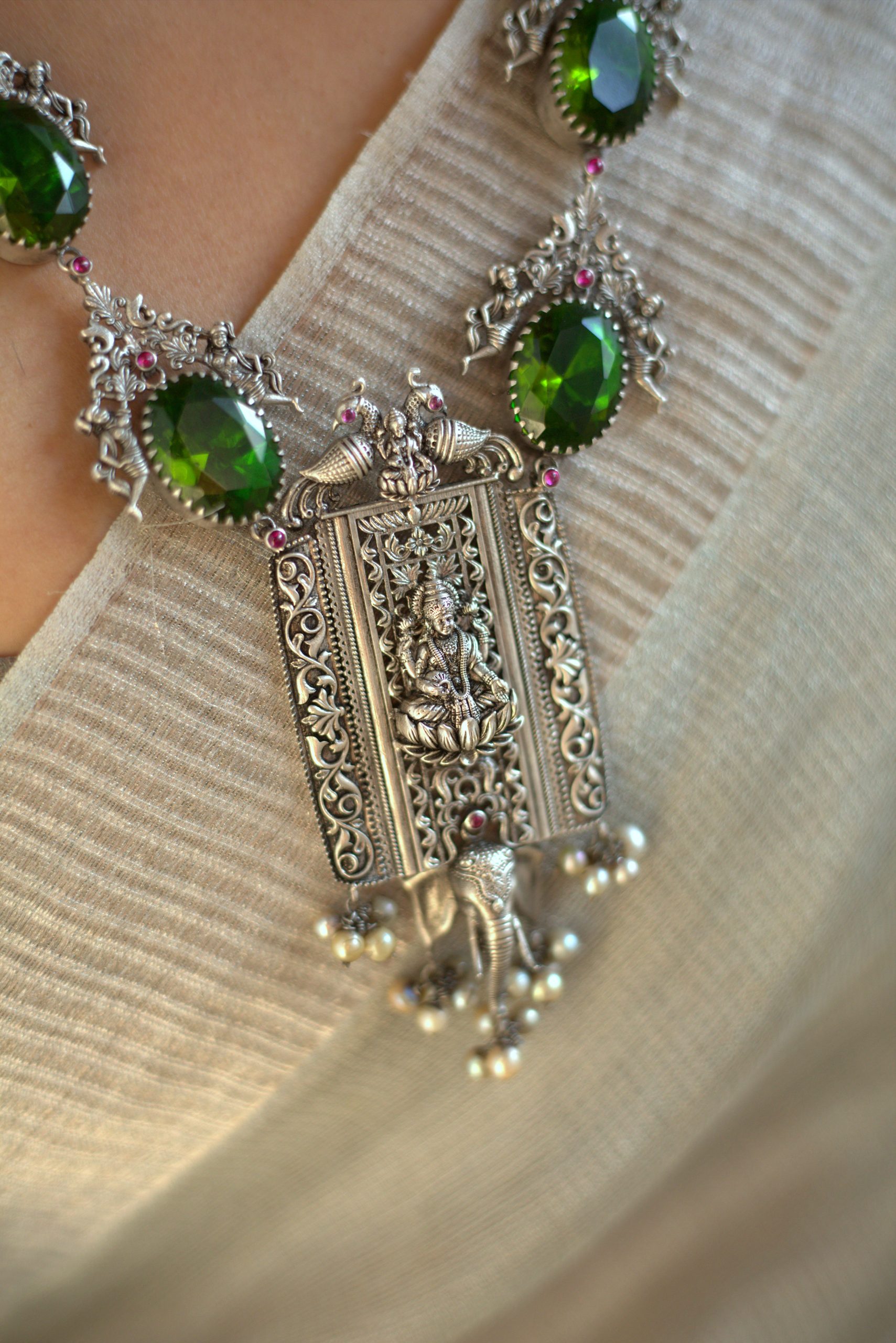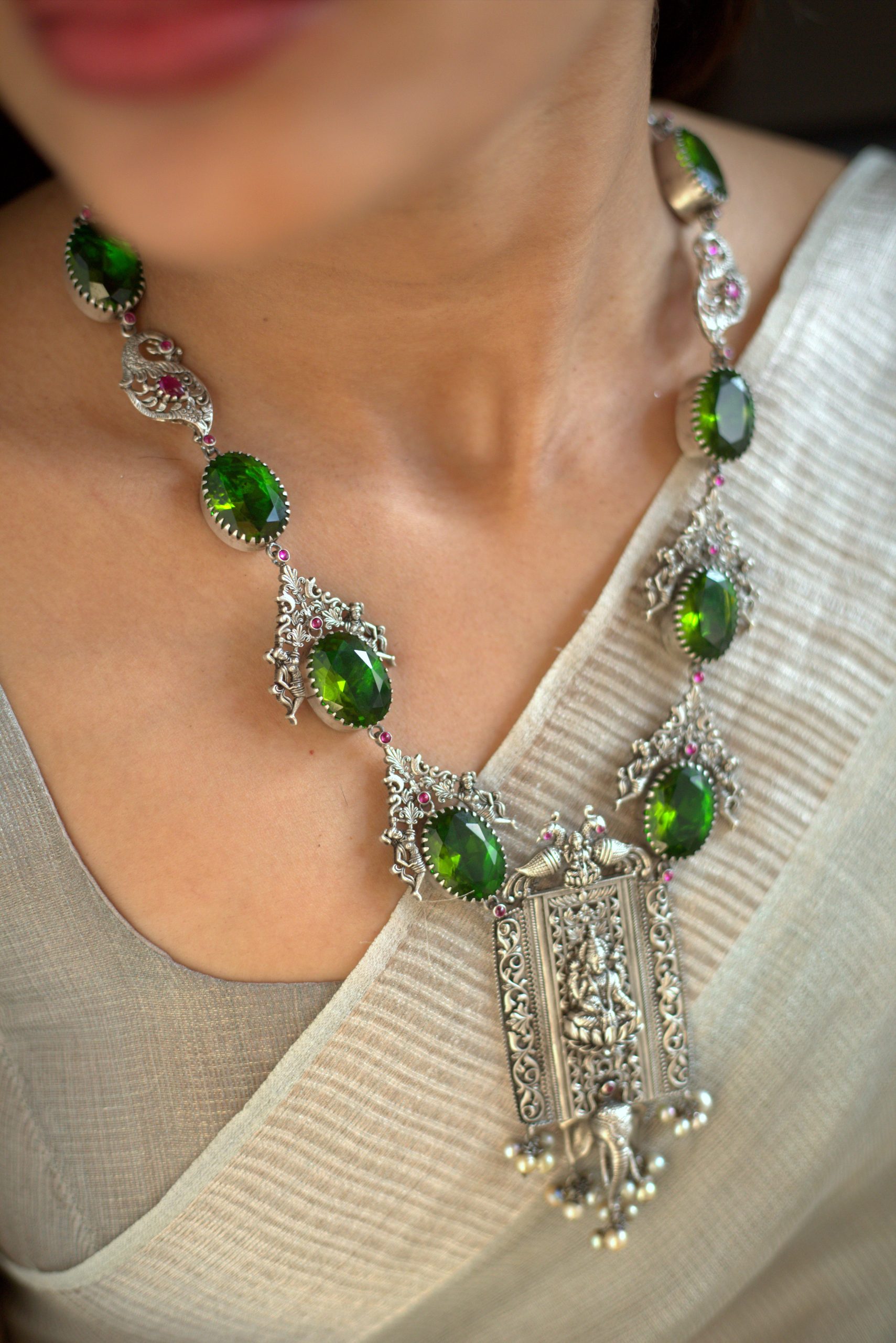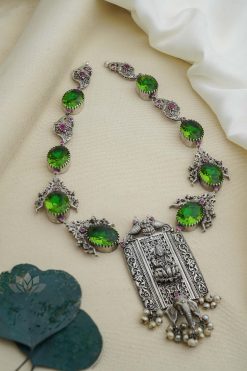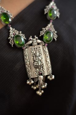 925 Silver – Peridot Stone Necklace with Nakshi work