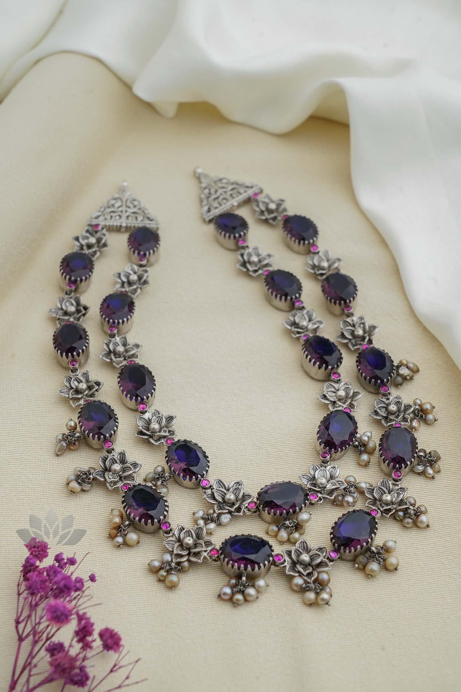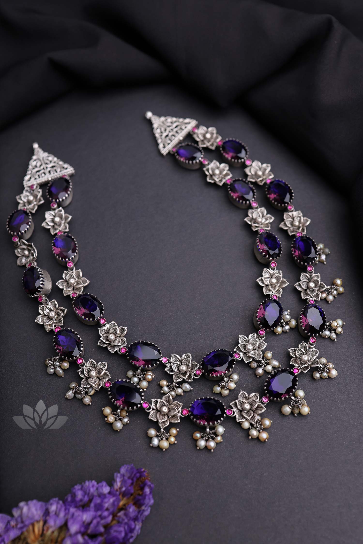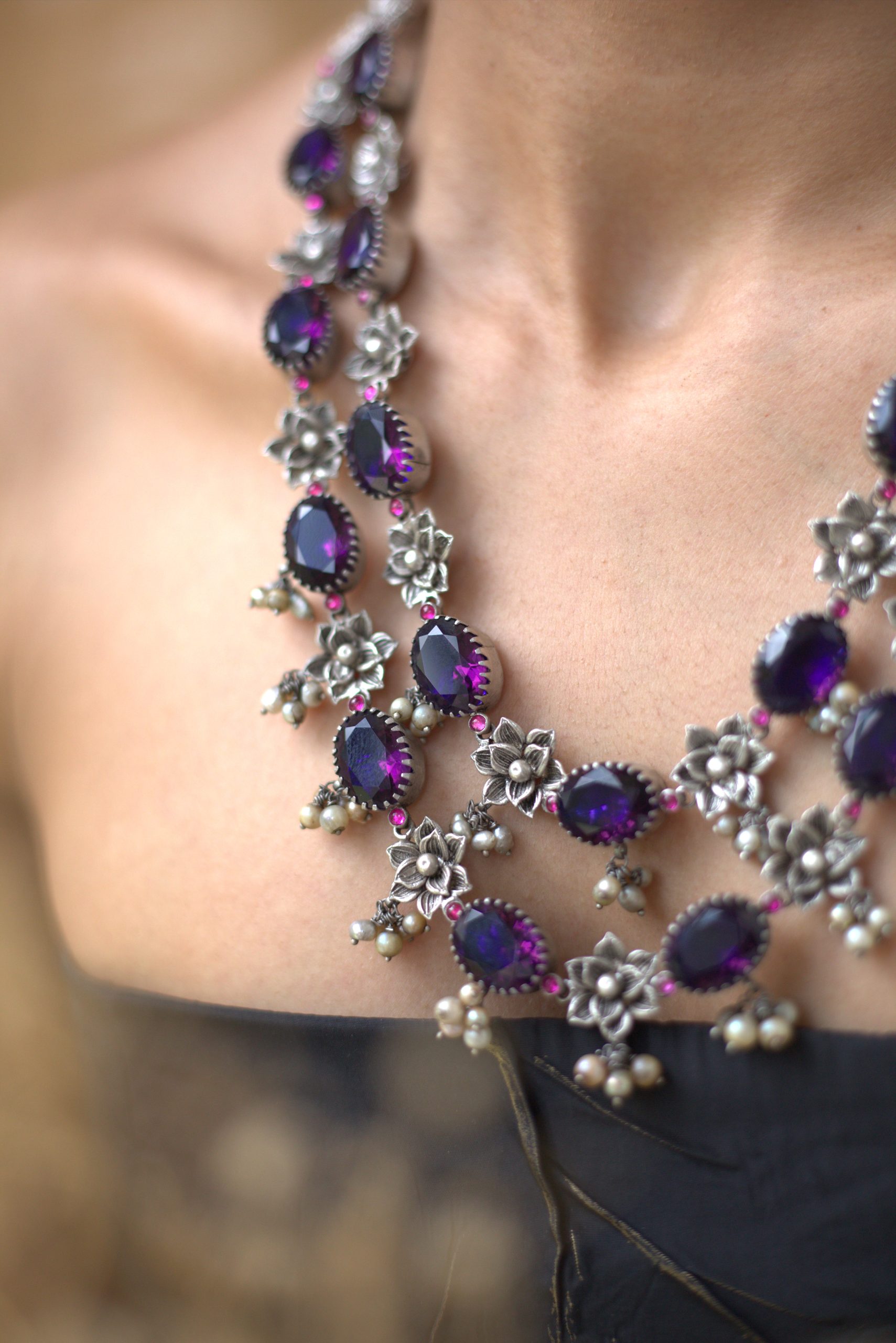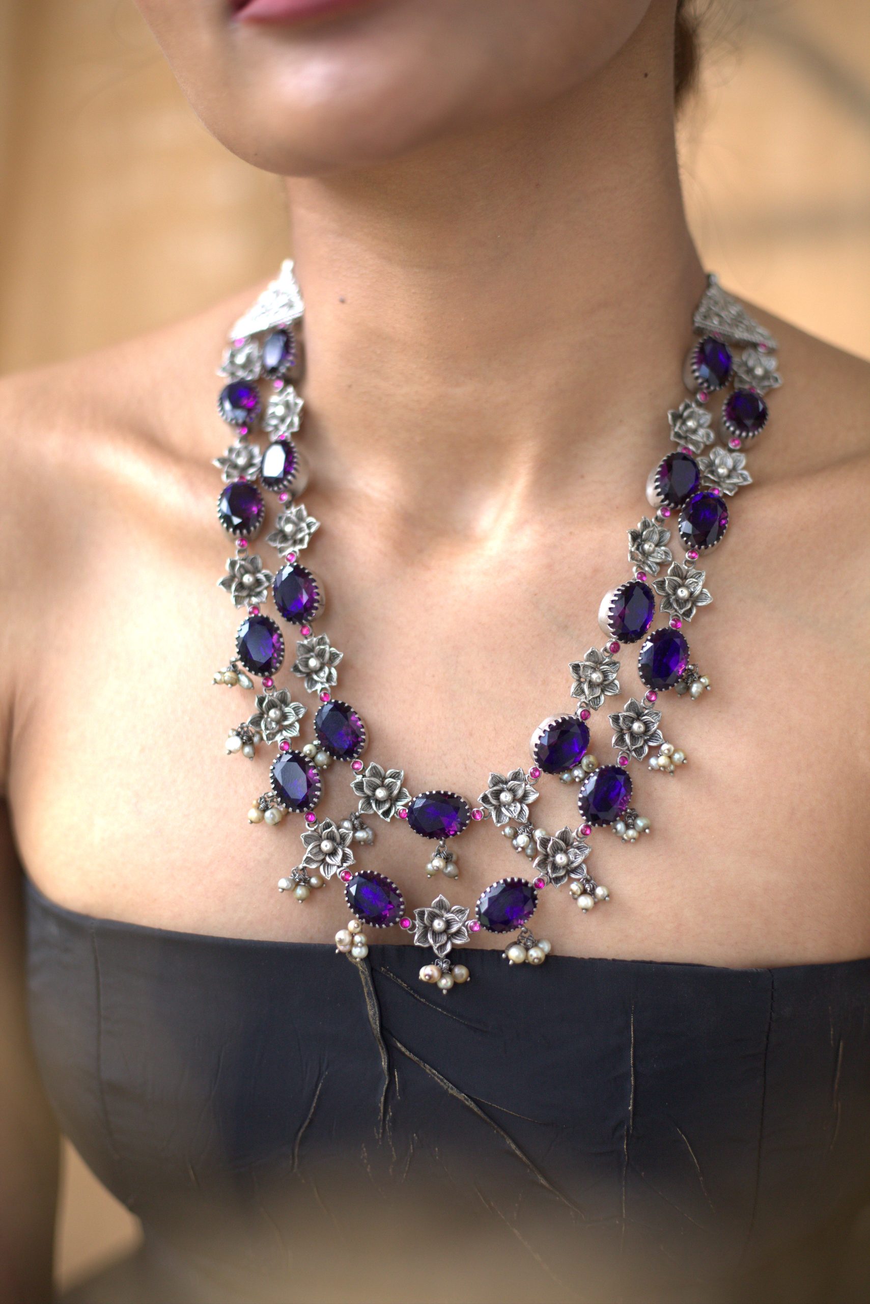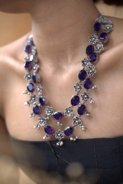 925 Silver – Amethyst Stone Necklace with Nakshi work
