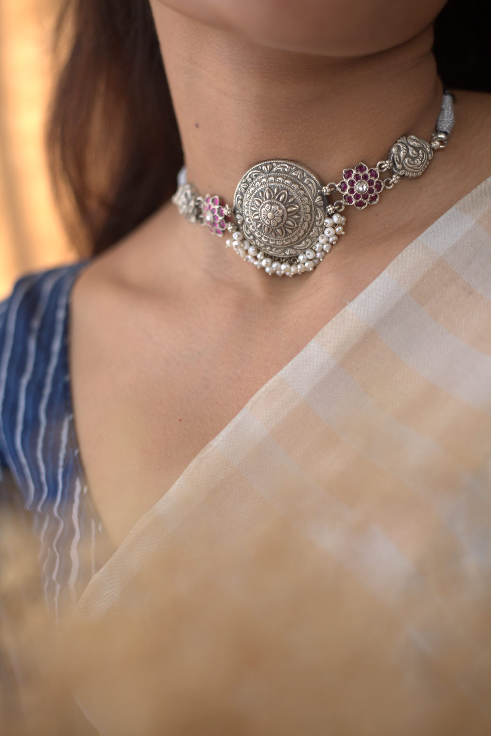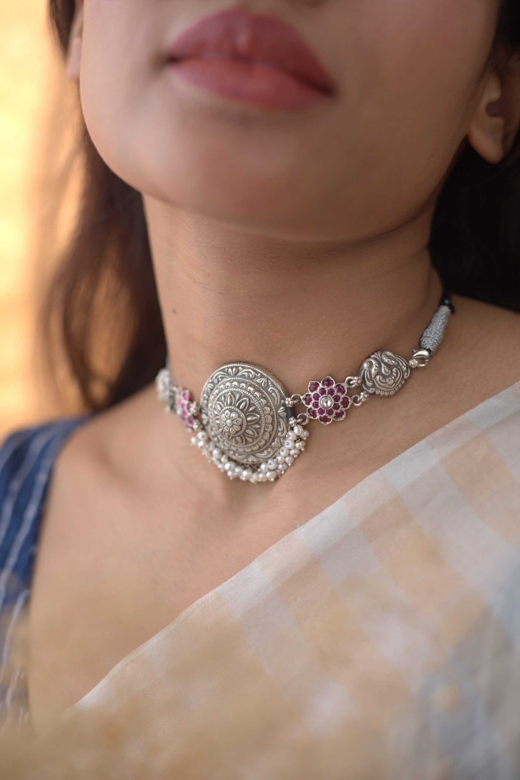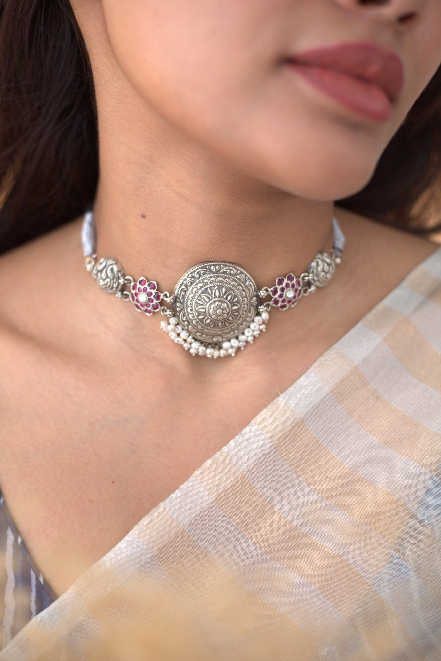 925 Silver – Kemp stone nakshi choker