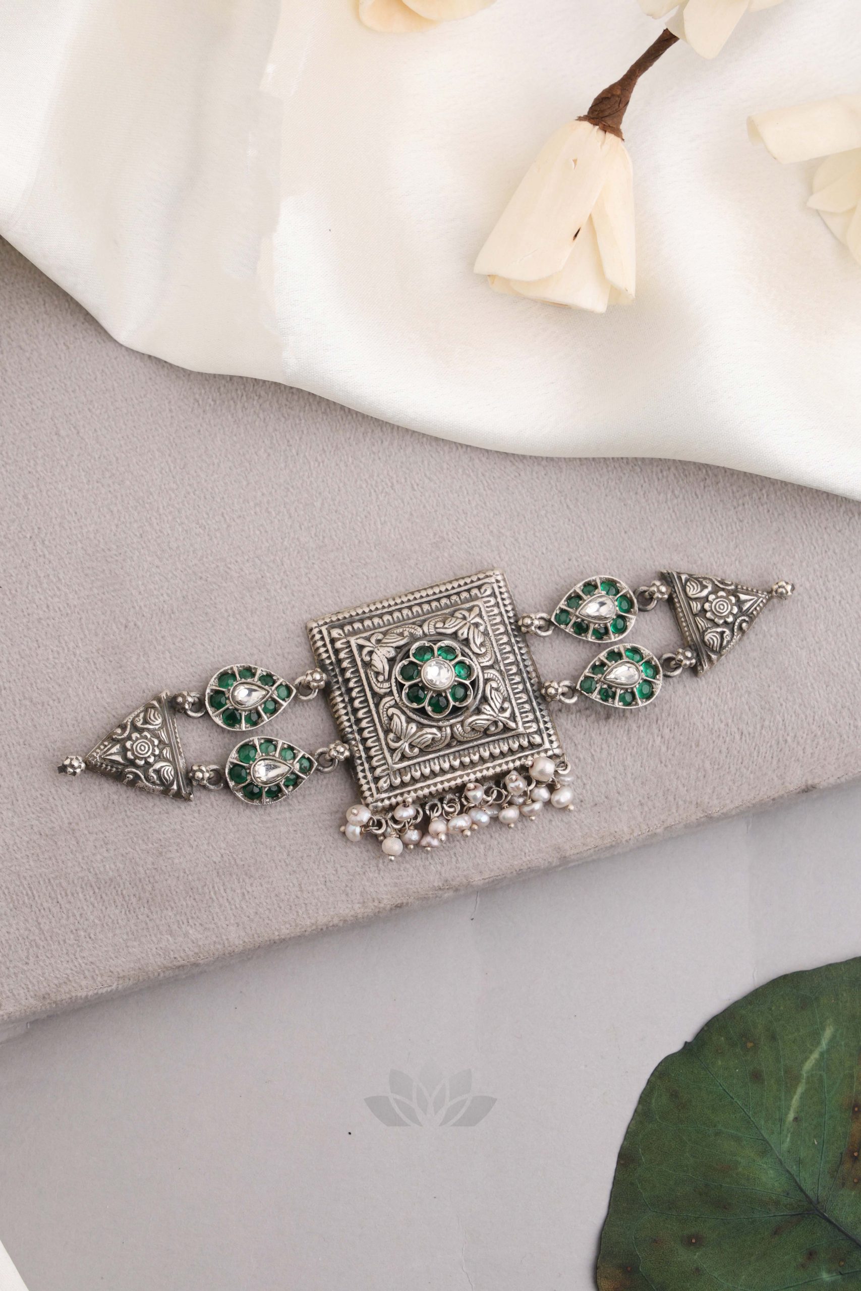 925 Silver – Kemp stone nakshi choker