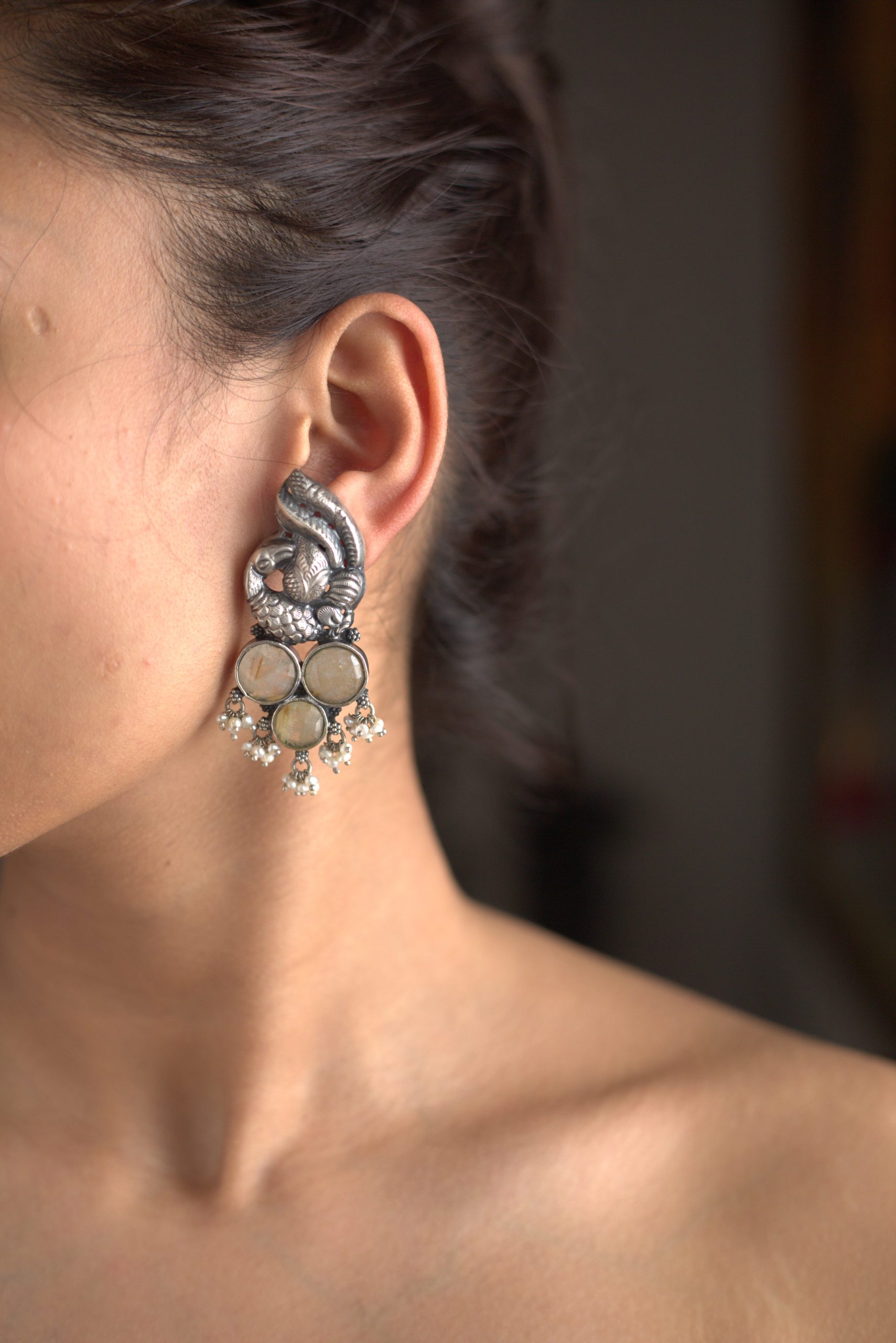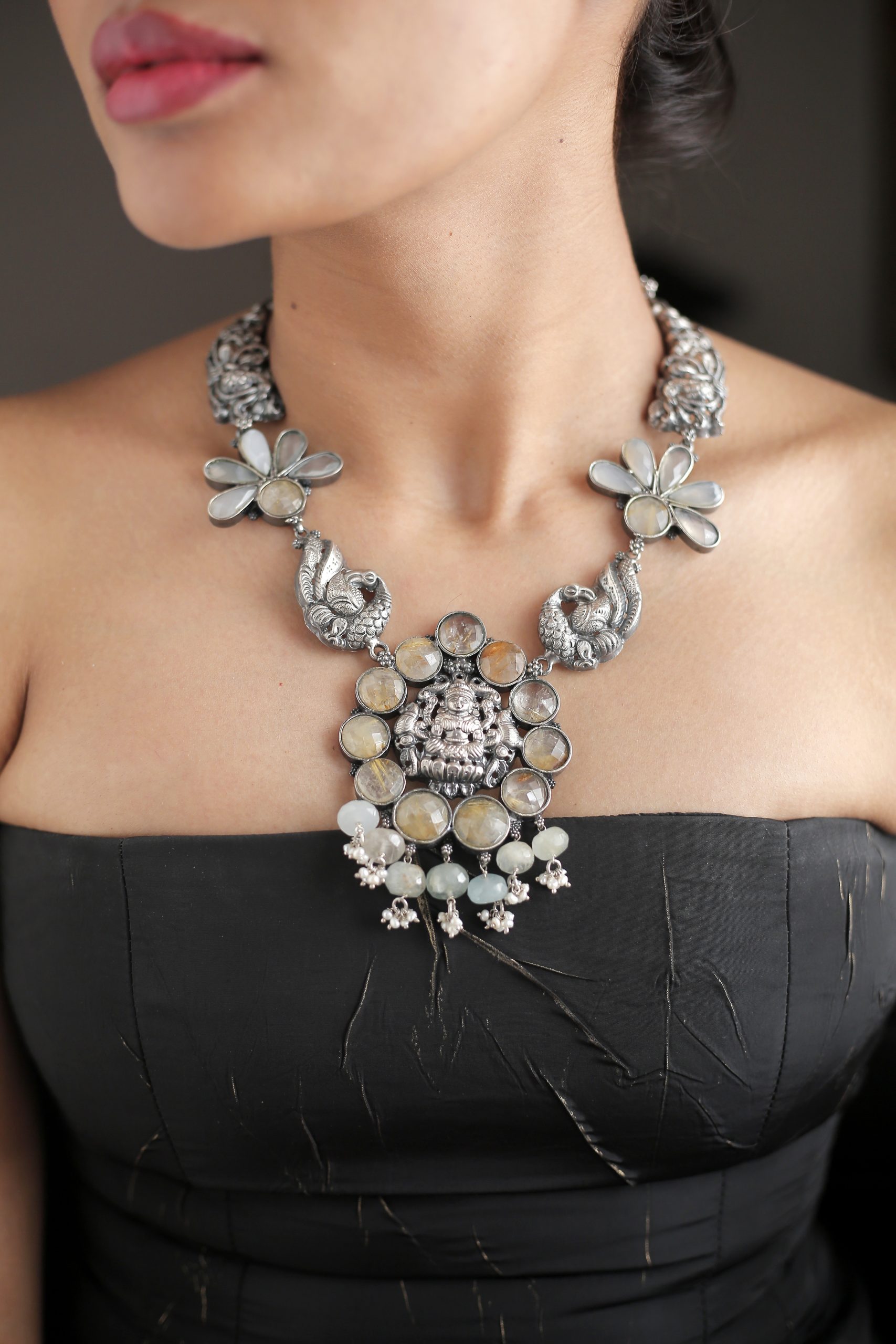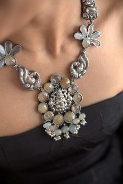 925 Silver – Statement stone necklace set with nakshi mayil pendant