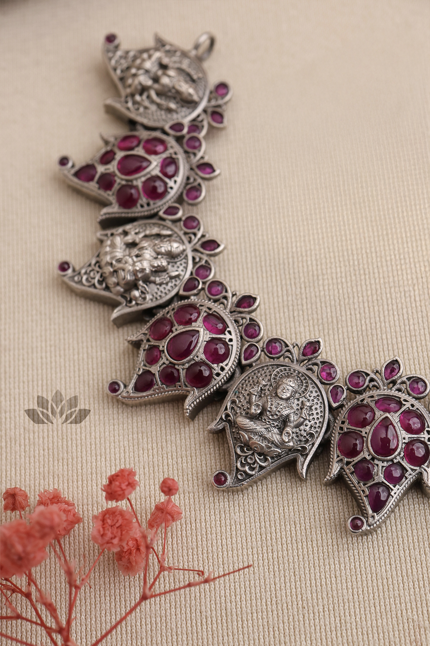 925 Silver – Kemp stone necklace with lakshmi pendant