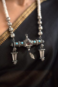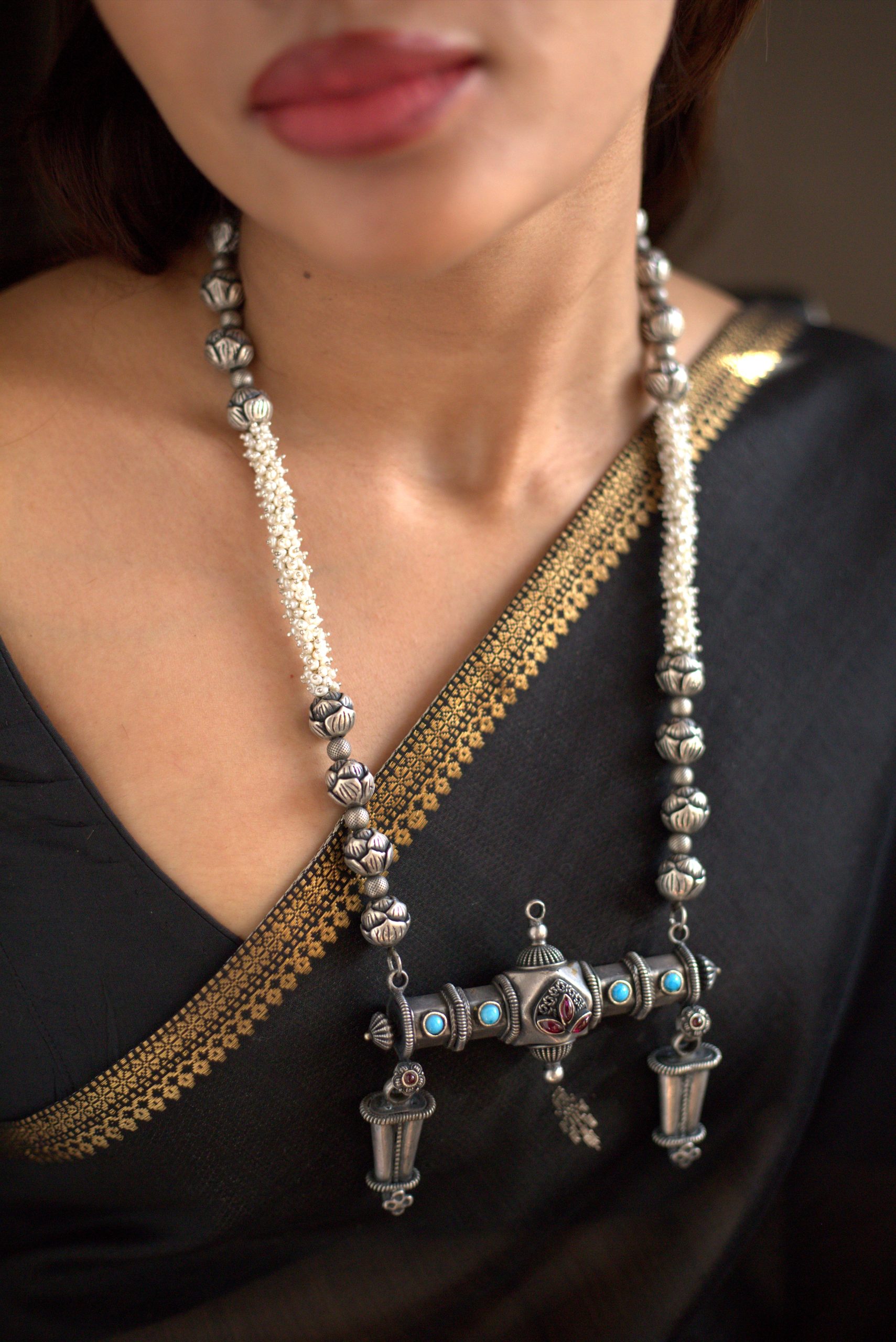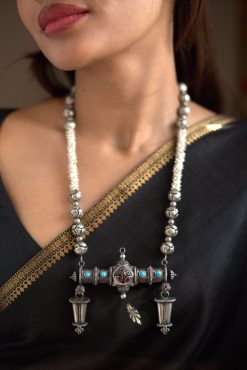 925 Silver – One of a kind long pearl and silver nakshi bead necklace