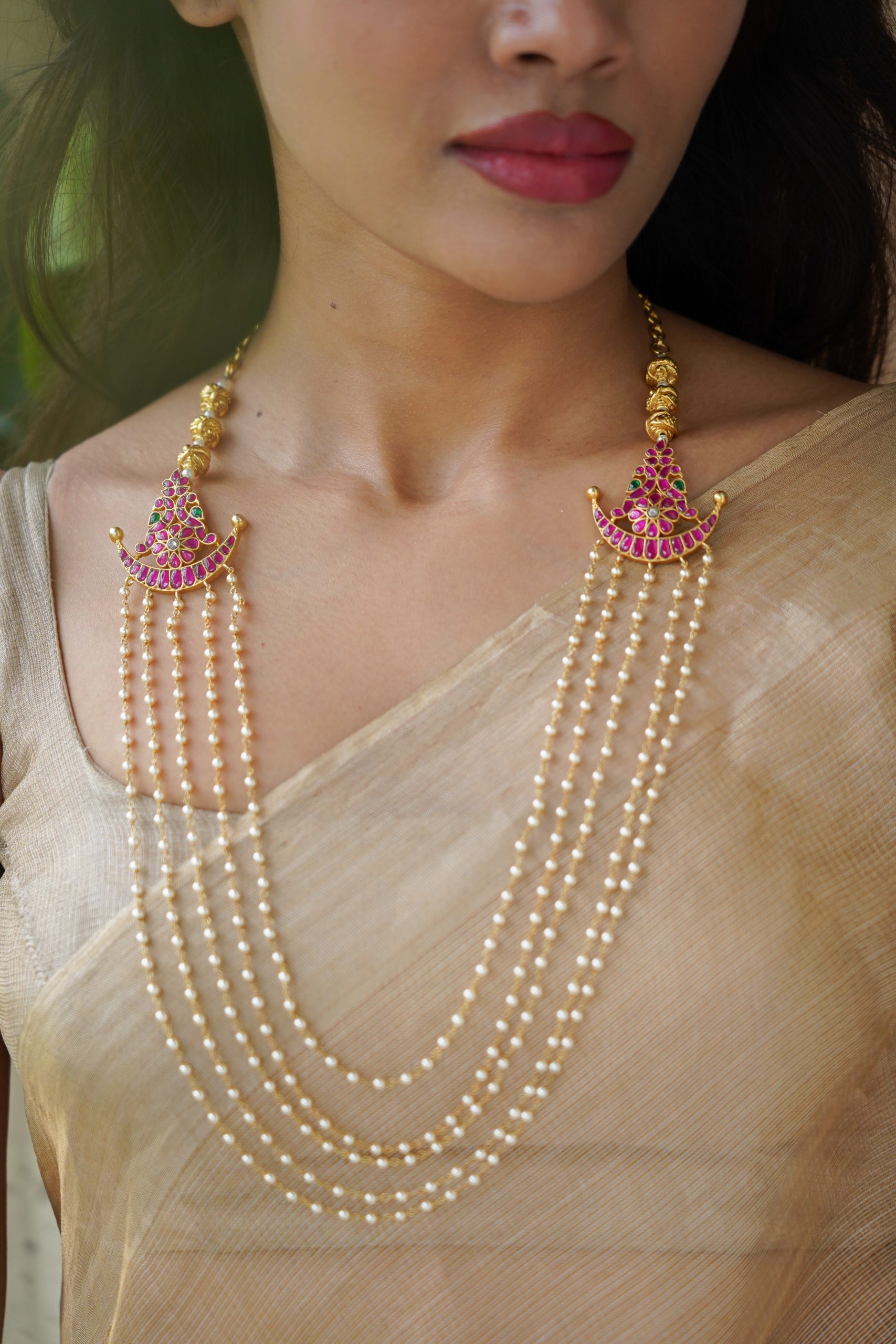 Gold plated 925 Silver – Multilayer pearl kundan necklace
