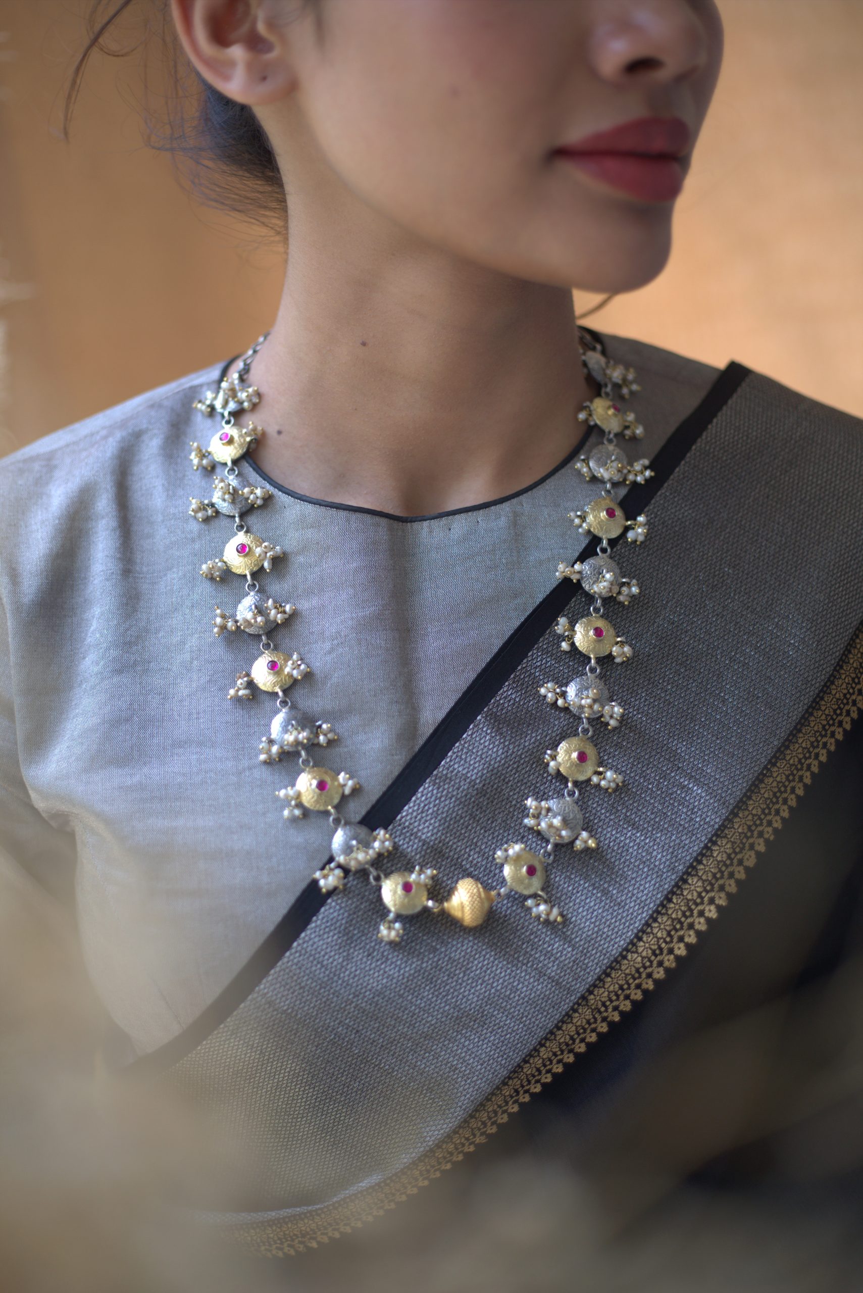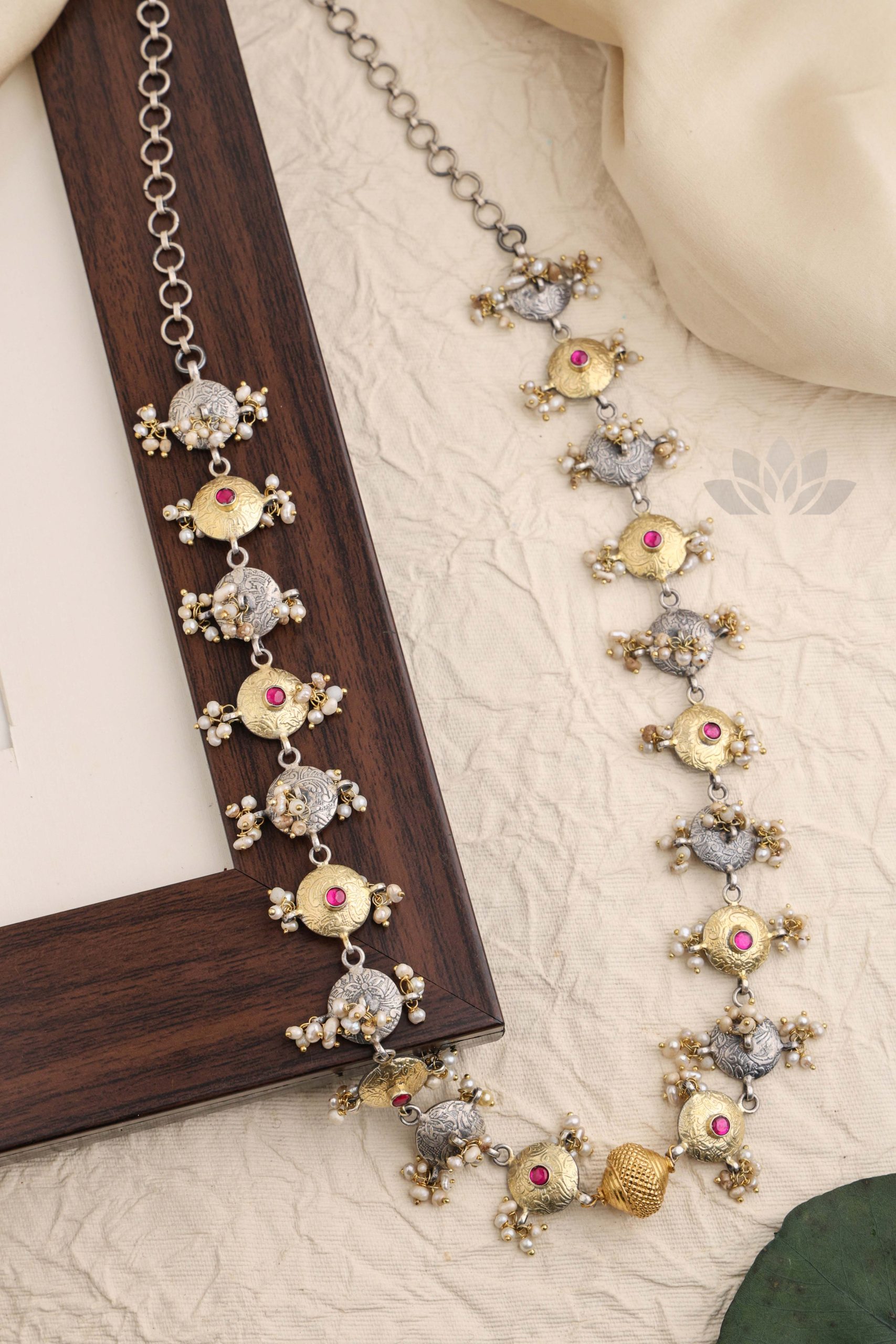 925 Silver – Dual tone necklace with bunch of pearl hangings