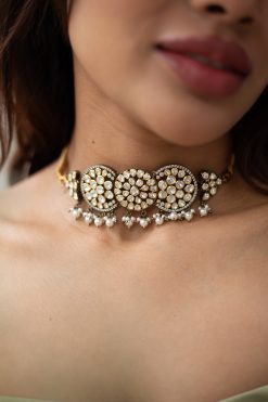 Gold plated 925 Silver – Moissanite stone choker set