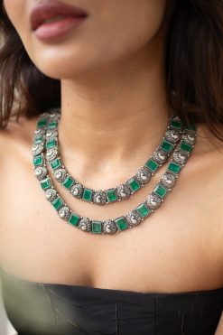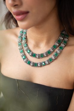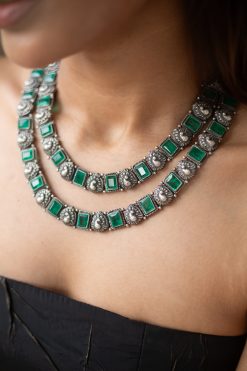 925 Silver – 2 layer cut stone necklace