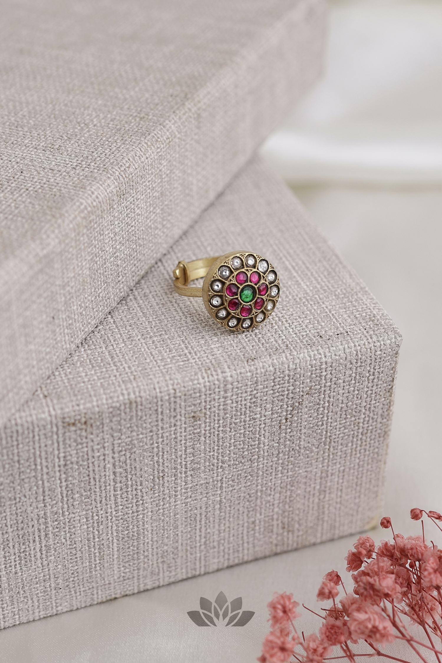 Gold plated 925 Silver – Kundan finger ring (Adjustable)